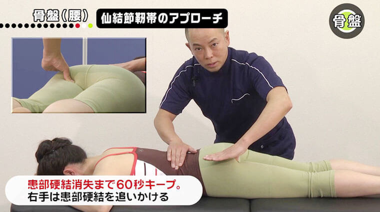 あらゆる慢性痛みを根治する骨盤ペインキラーテクニックの応用版を公開します!より優しい刺激で、患者さんの臀部に触れずに仙骨・腸骨・背骨が一気に矯正できるので女性の患者さんを中心に、生理中の方、妊婦さん、痔の方などにも気軽に施術することができる便利なテクニックです。