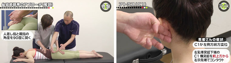 また、アトラス(頸椎1番)のズレを修正することにより、脳から全身に及ぶ神経伝達が正常化するので、慢性疲労や不眠症、頭痛、うつなど自律神経系の疾患に対しても劇的な効果を出せる。