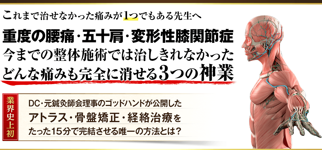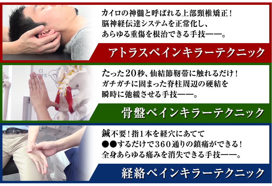 「3WAYペインキラーテクニック」なら、どんな痛みも完全に消すことができます。