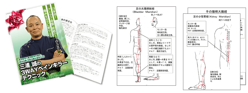 それだけではありません!三浦先生は、あなたにすぐに3WAYペインキラーテクニックを手に入れて、臨床で自由に使っていただけるようになっていただくために、DVDの内容をさらに効率よく学べる補足テキストを作ってくれまし た。