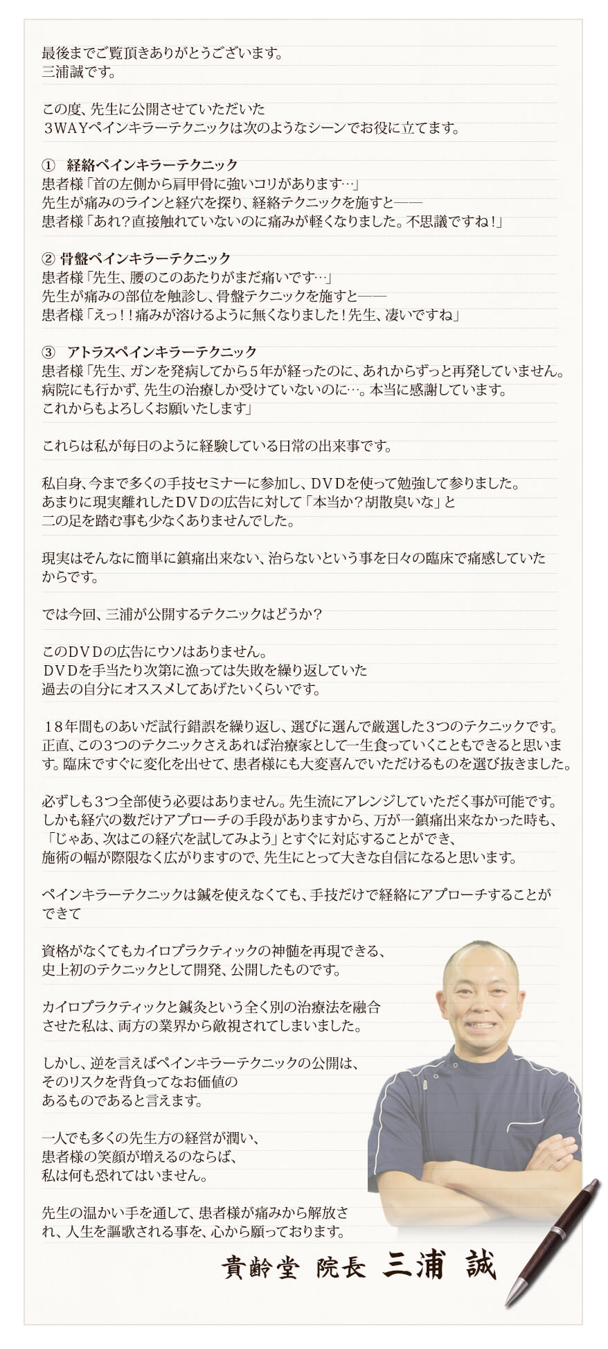 「3WAYペインキラーテクニック」のノウハウと補足知識を惜しみなく出し切ってくれたので、